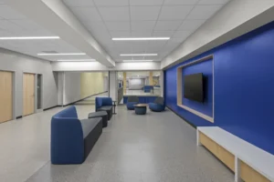 • Classroom cabinetry, countertops, and solid surface windowsills