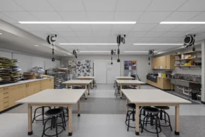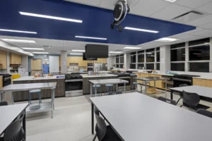 • FACS classroom culinary cabinetry with equipment accommodation, and quartz countertops throughout
